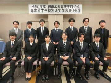 令和7年度 釧路工業高等専門学校専攻科学生特別研究発表会を開催しました令和7年12月9日(火)、釧路高専地域振興協力会と本校主催にて「令和7年度釧路工業高等専門学校専攻科学生特別研究発表会」を開催しました。 この発表会は専 -