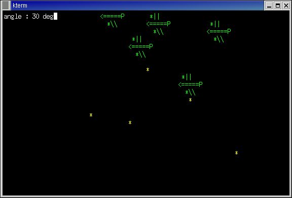 - コンパイル:% cc cannon.c -o cannon -lm -lncurses